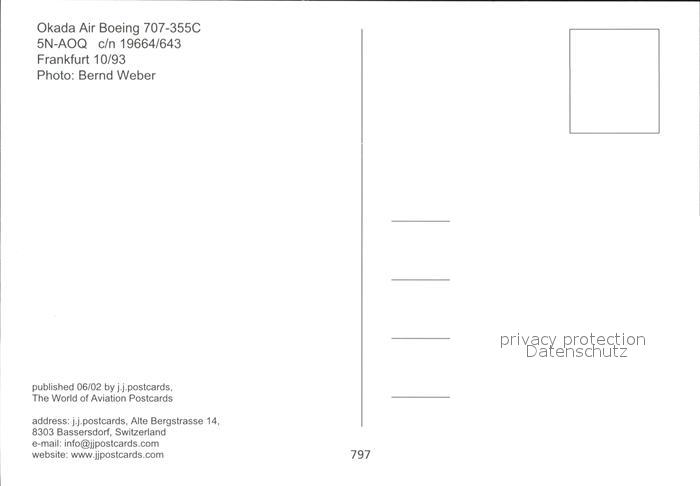 Flugzeuge Zivil Okada Air Boeing 707-355C 5N-AOQ c/n 19664/643 postalisch nicht gelaufen Erhaltung siehe scans