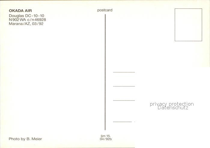 Flugzeuge Zivil Okada Air Douglas DC-10-10 N902WA c/n 46928 postalisch nicht gelaufen Erhaltung siehe scans