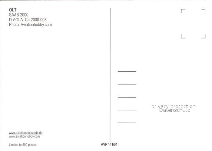 Flugzeuge Zivil OLT SAAB 2000 D-AOLA Cn 2000-008 postalisch nicht gelaufen Erhaltung siehe scans