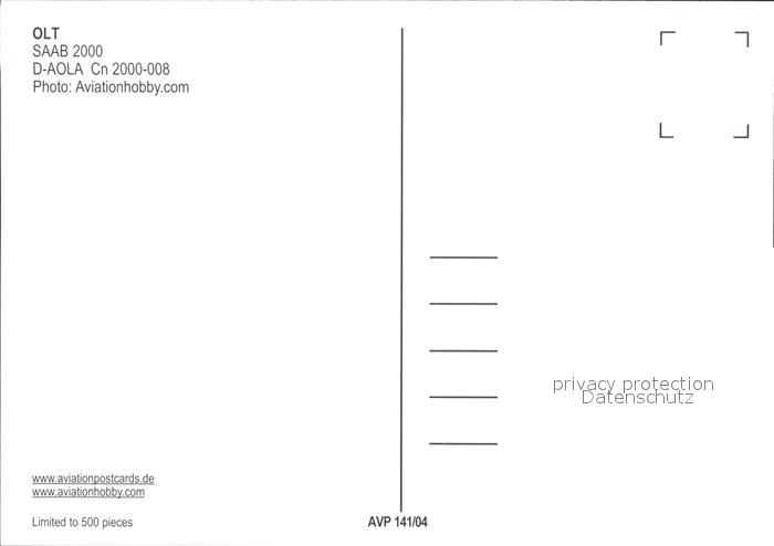 Flugzeuge Zivil OLT Saab 2000 D-AOLA Cn 2000-008 postalisch nicht gelaufen Erhaltung siehe scans
