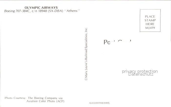 Flugzeuge Zivil Olympic Airways Boeing 707-384C c/n 18948 SX-DBA Athens postalisch nicht gelaufen Erhaltung siehe scans