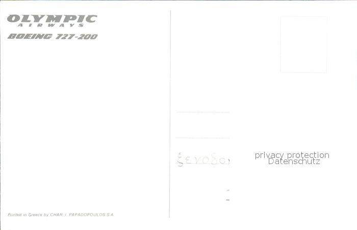 Flugzeuge Zivil Olympic Airways Boeing 727-200 postalisch nicht gelaufen Erhaltung siehe scans