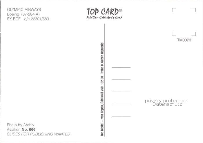Flugzeuge Zivil Olympic Airways Boeing 737-284 A SX-BCF c/n 22301/683 postalisch nicht gelaufen Erhaltung siehe scans