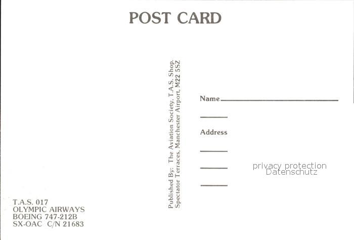 Flugzeuge Zivil Olympic Airways Boeing 747-212B SX-OAC C/N 21683 postalisch nicht gelaufen Erhaltung siehe scans