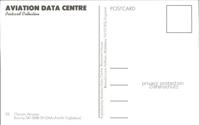 Flugzeuge Zivil Olympic Airways Boeing 747-284B SX-OAA postalisch nicht gelaufen Erhaltung siehe scans