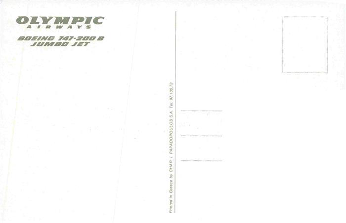 74026042 Flugzeuge Zivil Olympic Boeing 747 200 B Jumbo Jet postalisch nicht gelaufen Erhaltung siehe scans [SanaeD93] KatCode: 22120000001300