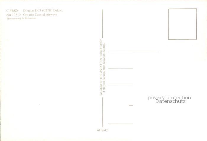 Flugzeuge Zivil Ontario Central Airways Douglas DC3 C-FBKX c/n 32812 postalisch nicht gelaufen Erhaltung siehe scans