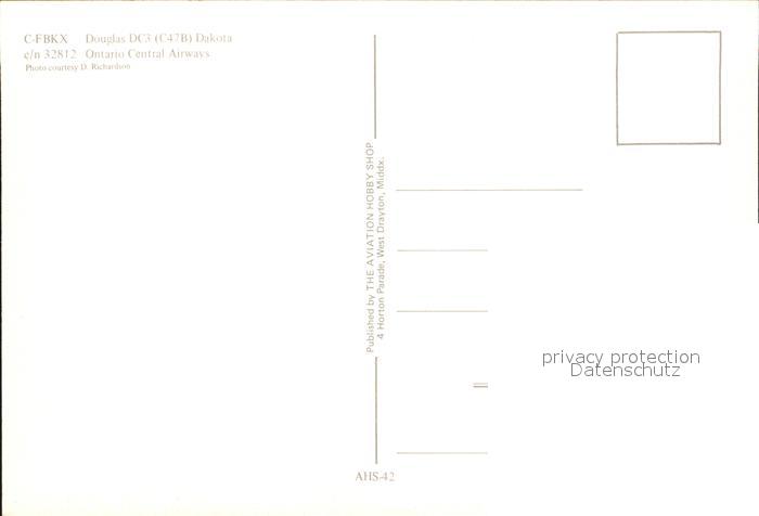 Flugzeuge Zivil Ontario Central Airways Douglas DC3 C47B C-FBKX c/n 32812 postalisch nicht gelaufen Erhaltung siehe scans