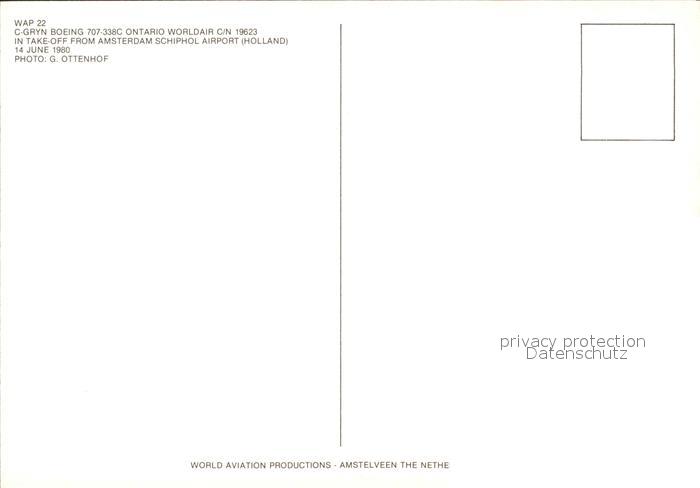 Flugzeuge Zivil Ontario Worldair Boeing 707-338C C-GRYN c/n 19623 postalisch nicht gelaufen Erhaltung siehe scans