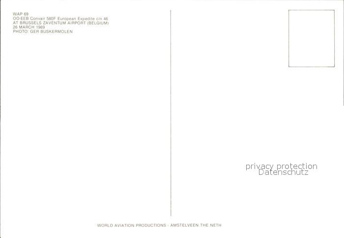 Flugzeuge Zivil OO-EEB Convair 580F European Expedite c/n 46 postalisch nicht gelaufen Erhaltung siehe scans