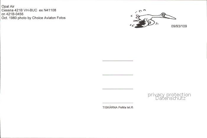 Flugzeuge Zivil Opal Air Cessna 421B VH-BUC ex N41108 cn 421B-0456 postalisch nicht gelaufen Erhaltung siehe scans