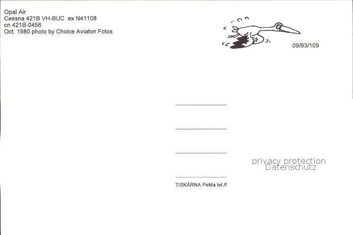 Flugzeuge Zivil Opal Air Cessna 421B VH-BUC postalisch nicht gelaufen Erhaltung siehe scans