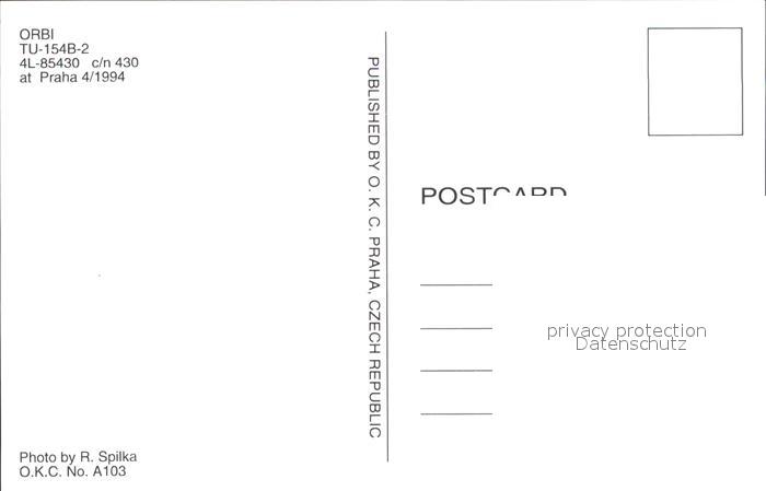 Flugzeuge Zivil ORBI TU-154B-2 4L-85430 c/n 430 postalisch nicht gelaufen Erhaltung siehe scans