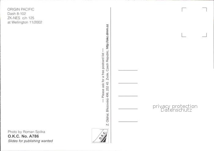 Flugzeuge Zivil Origin Pacific Dash 8-102 ZK-NES c/n 125 postalisch nicht gelaufen Erhaltung siehe scans