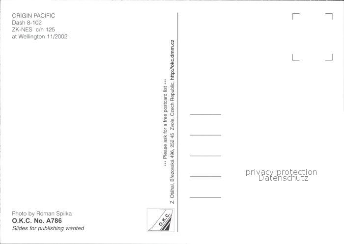 Flugzeuge Zivil Origin Pacific Dash 8-102 ZK-NES c/n 125 postalisch nicht gelaufen Erhaltung siehe scans