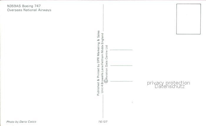 Flugzeuge Zivil Overseas National Airways Boeing 747 N359AS postalisch nicht gelaufen Erhaltung siehe scans