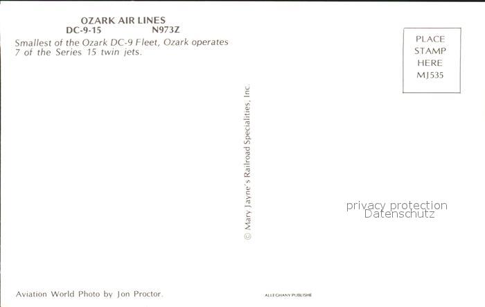 Flugzeuge Zivil Ozark Air Lines DC-9-15 N973Z postalisch nicht gelaufen Erhaltung siehe scans
