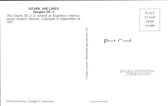 Flugzeuge Zivil Ozark Air Lines Douglas DC-3 postalisch nicht gelaufen Erhaltung siehe scans