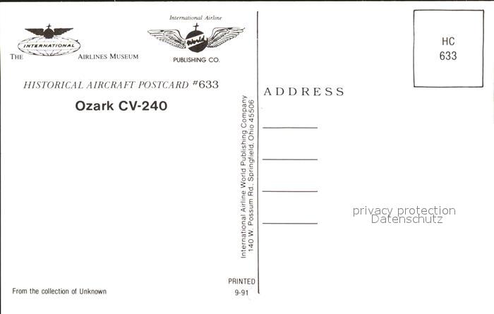 Flugzeuge Zivil Ozark CV-240 N94264 postalisch nicht gelaufen Erhaltung siehe scans