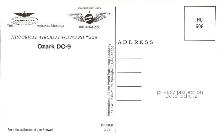 Flugzeuge Zivil Ozark DC-9 N968E postalisch nicht gelaufen Erhaltung siehe scans
