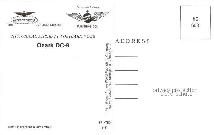 Flugzeuge Zivil Ozark DC-9 postalisch nicht gelaufen Erhaltung siehe scans
