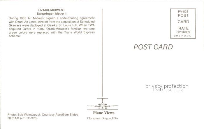 71797990 Flugzeuge Zivil Ozark Midwest Swearingen Metro II N251AM c/n TC-376 KatCode 22120000001300