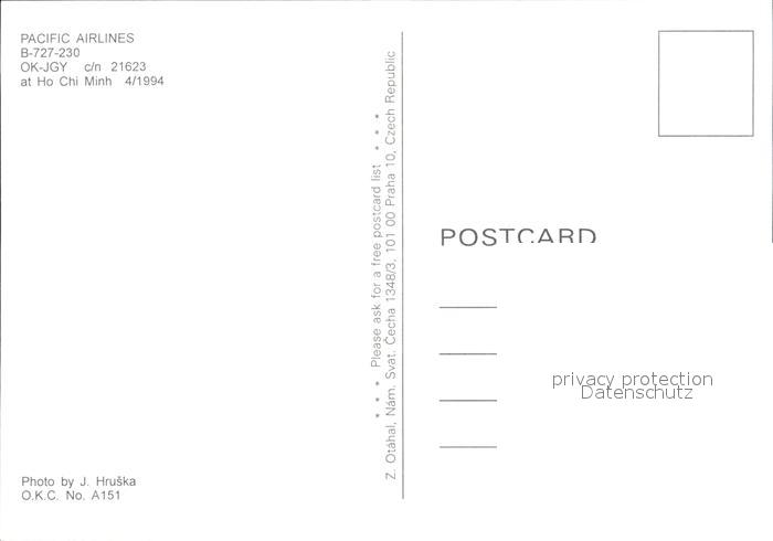 Flugzeuge Zivil Pacific Airlines B-727-230 OK-JGY Ho Chi Minh postalisch nicht gelaufen Erhaltung siehe scans