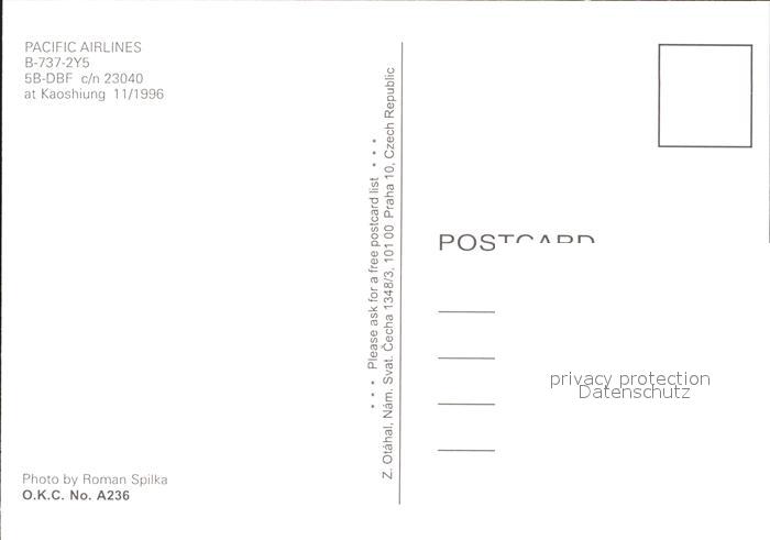 Flugzeuge Zivil Pacific Airlines B-737-2Y5 5B-DBF c/n 23040 postalisch nicht gelaufen Erhaltung siehe scans