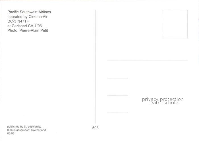 Flugzeuge Zivil Pacific Southwest Airlines DC-3 N47TF postalisch nicht gelaufen Erhaltung siehe scans