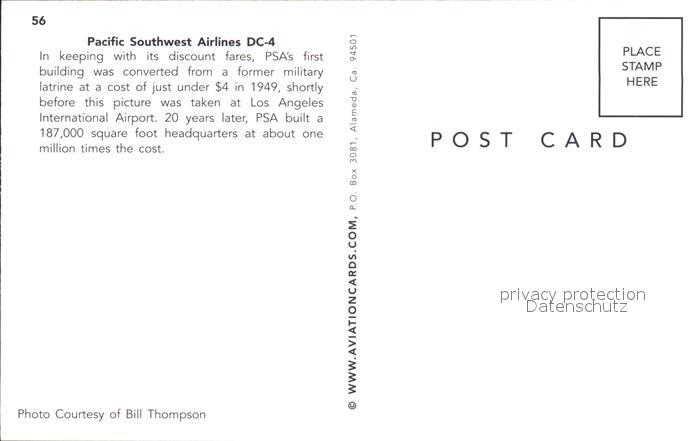 Flugzeuge Zivil Pacific Southwest Airlines DC-4 PSA postalisch nicht gelaufen Erhaltung siehe scans