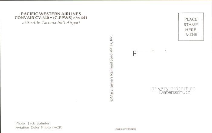 Flugzeuge Zivil Pacific Western Airlines Convair CV-640 C-FPWS c/n 441 postalisch nicht gelaufen Erhaltung siehe scans
