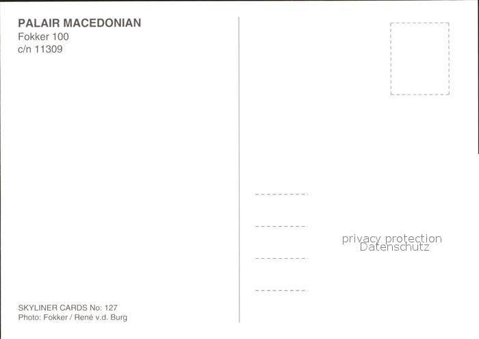 Flugzeuge Zivil Palair Macedonian Fokker 100 c/n 11309 postalisch nicht gelaufen Erhaltung siehe scans