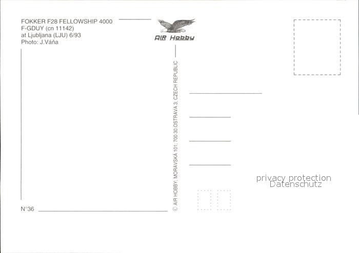 Flugzeuge Zivil Palair Macedonian Fokker F28 Fellowship 4000 F-GDUY cn 11142 postalisch nicht gelaufen Erhaltung siehe scans