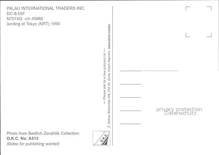 Flugzeuge zivil Palau International Traders DC-8-55F N7015Q c/n 45882 Tokyo postalisch nicht gelaufen Erhaltung siehe scans
