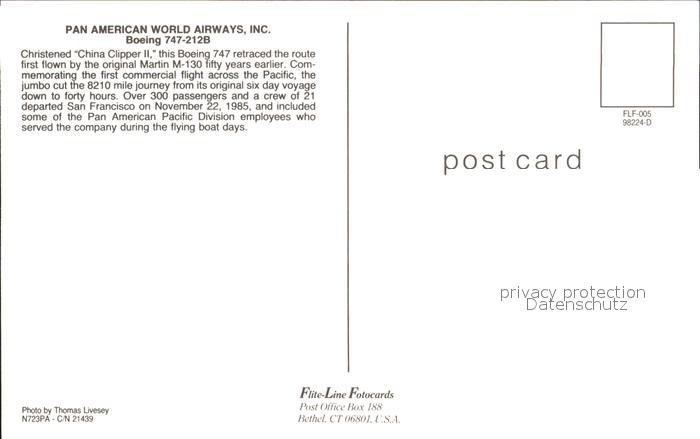 Flugzeuge Zivil Pan American World Airways Boeing 747-212B postalisch nicht gelaufen Erhaltung siehe scans