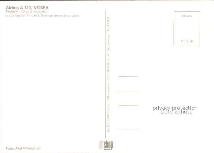 Flugzeuge Zivil PanAm A310 N803PA postalisch nicht gelaufen Erhaltung siehe scans