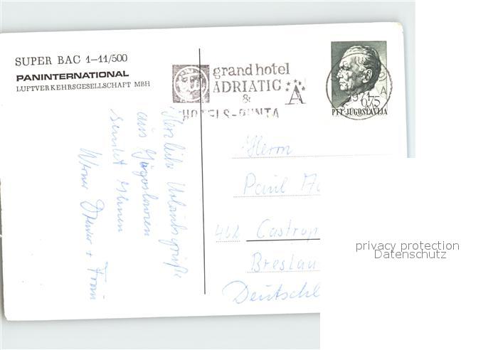 alte Postkarte Flugzeuge Zivil Paninternational Super Bac 1-11/500 postalisch gelaufen Erhaltung siehe scans