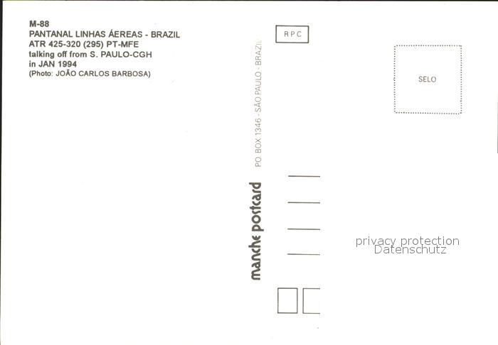 Flugzeuge Zivil Pantanal Linhas Aereas Brazil ATR 425-320 295 PT-MFE postalisch nicht gelaufen Erhaltung siehe scans
