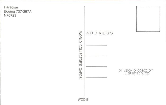 Flugzeuge Zivil Paradise Boeing 737-297 A N70723 postalisch nicht gelaufen Erhaltung siehe scans