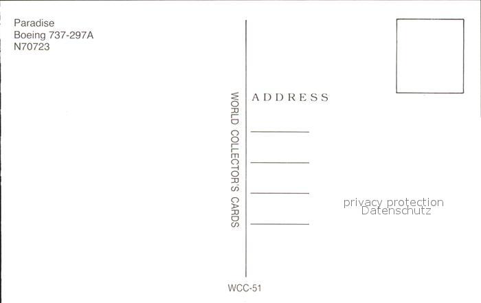 Flugzeuge Zivil Paradise Boeing 737-297A N70723 postalisch nicht gelaufen Erhaltung siehe scans