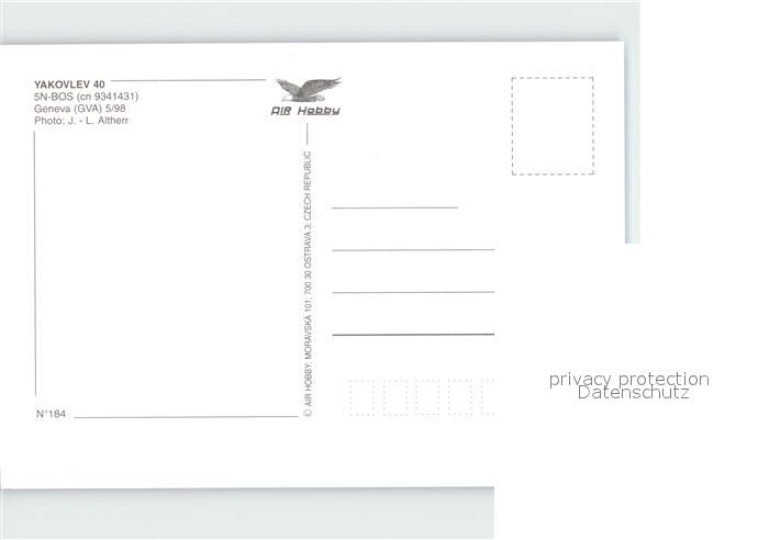 Flugzeuge Zivil PAS Yakovlev 40 5N-BOS postalisch nicht gelaufen Erhaltung siehe scans