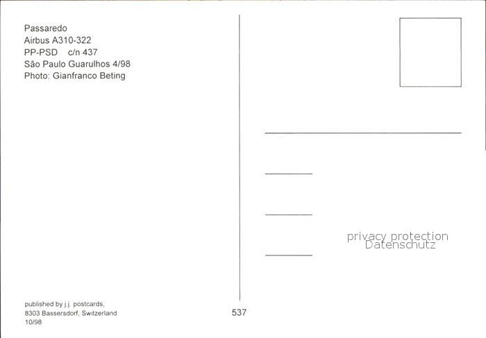 Flugzeuge Zivil Passaredo A310-322 PP-PSD c/n 437 postalisch nicht gelaufen Erhaltung siehe scans