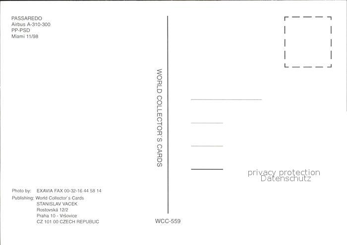 Flugzeuge Zivil Passaredo Airbus A-310-300 PP-PSD postalisch nicht gelaufen Erhaltung siehe scans