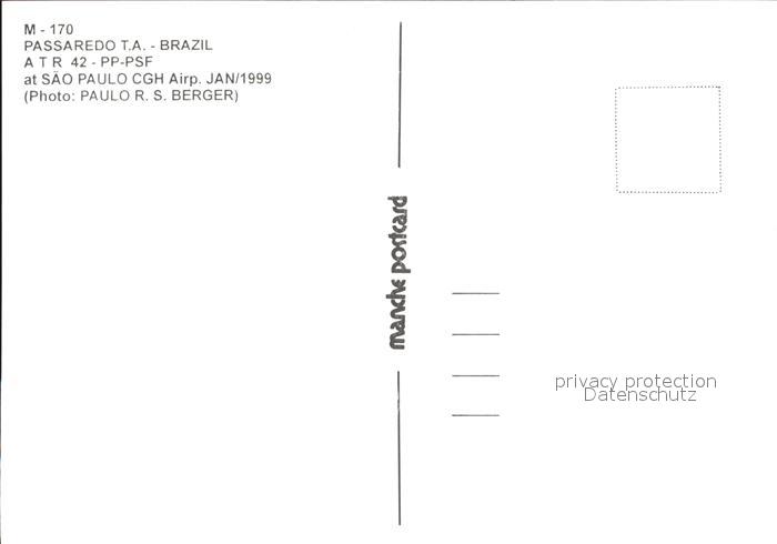 Flugzeuge Zivil Passaredo T.A. ATR-42 PP-PSF postalisch nicht gelaufen Erhaltung siehe scans