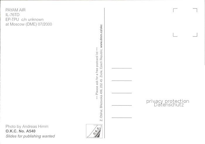Flugzeuge zivil Payam Air IL-76TD EP-TPU c/cn unknown Moskow (DME) postalisch nicht gelaufen Erhaltung siehe scans