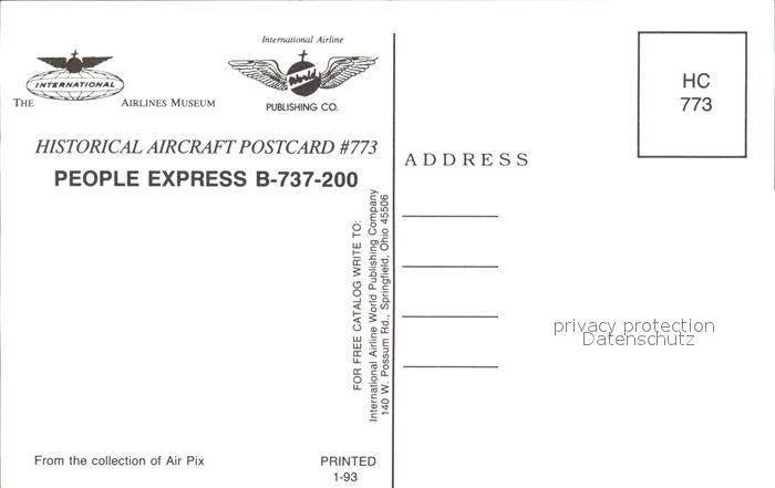 Flugzeuge Zivil People Express B-737-200 postalisch nicht gelaufen Erhaltung siehe scans