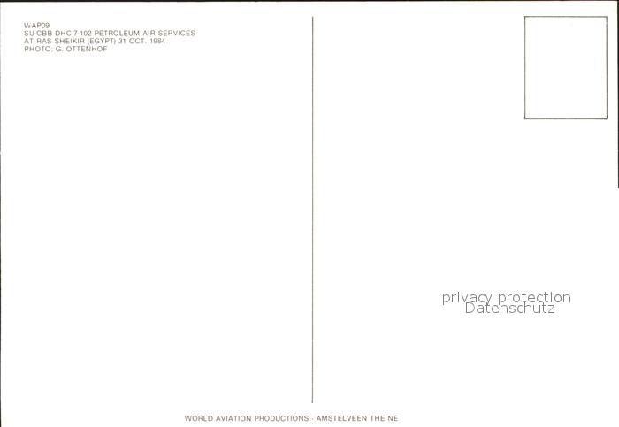 Flugzeuge Zivil Petroleum Air Services DHC 7-102 SU-CBB postalisch nicht gelaufen Erhaltung siehe scans