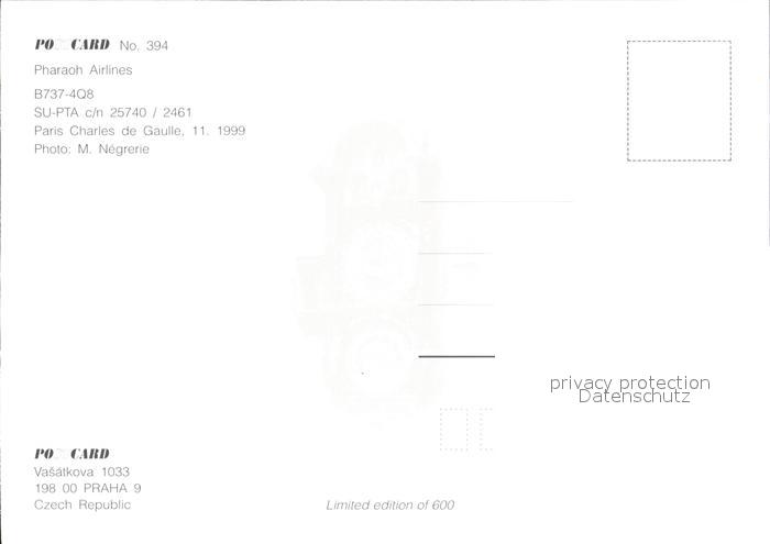 Flugzeuge Zivil Pharaoh Airlines B737-4Q8 SU-PTA c/n 25740/2461 postalisch nicht gelaufen Erhaltung siehe scans