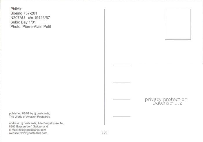 Flugzeuge Zivil PhilAir Boeing 737-201 N207AU c/n 19423/67 postalisch nicht gelaufen Erhaltung siehe scans