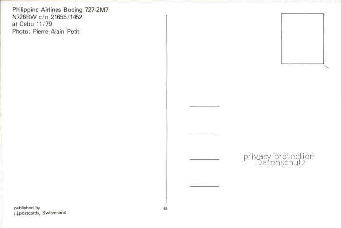 Flugzeuge Zivil Philippine Airlines Boeing 727-2M7 N726RW c/n 21655/1452 postalisch nicht gelaufen Erhaltung siehe scans